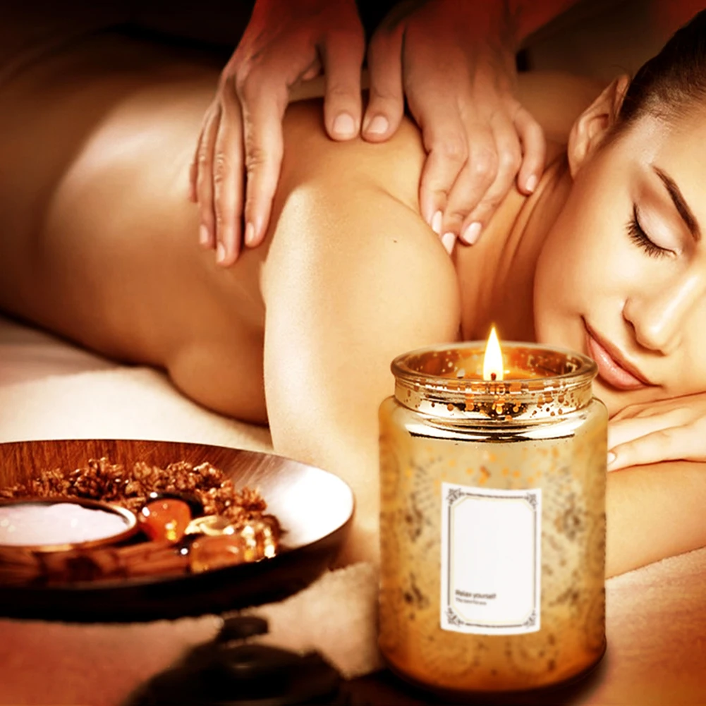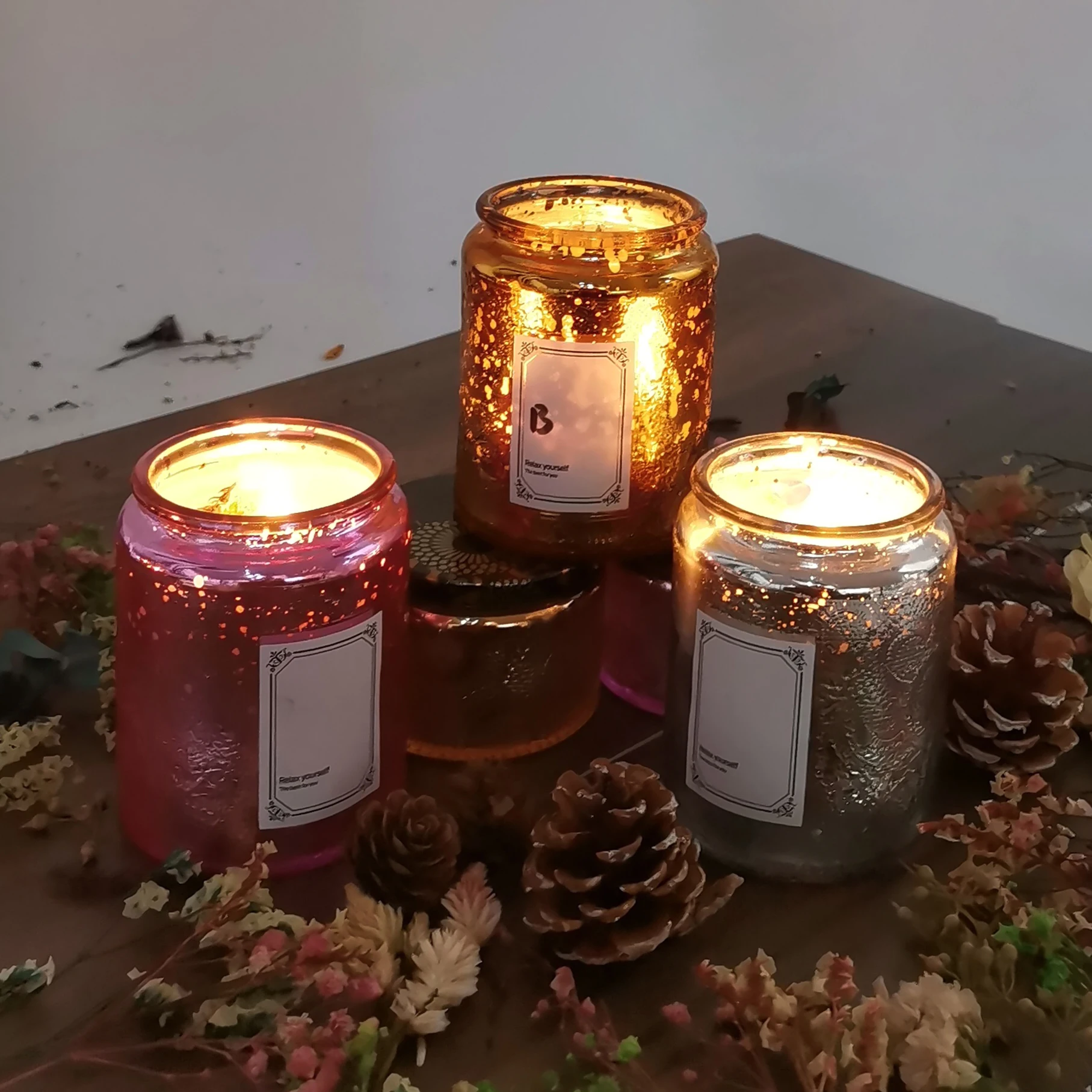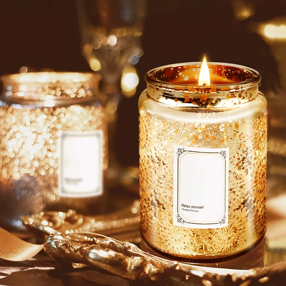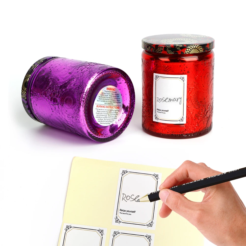 MOSS TEMPLE Embossed Blinking Glass Candle Container Electroplated Shining Jar with Lids and Candle Warning Label for Candle Making